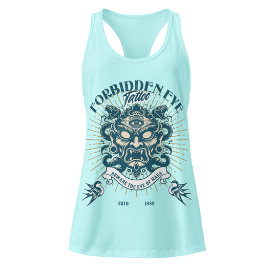 Forbidden Eye Tattoo Racerback Tank – Women’s Fit | Cute Adventure Theme Park Top, Vintage Tattoo Graphic Tank