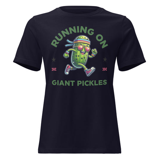 Running on Giant Pickles Tee – Women’s Fit | Cute Pickle Theme Park Shirt, Retro Snack Graphic Tee